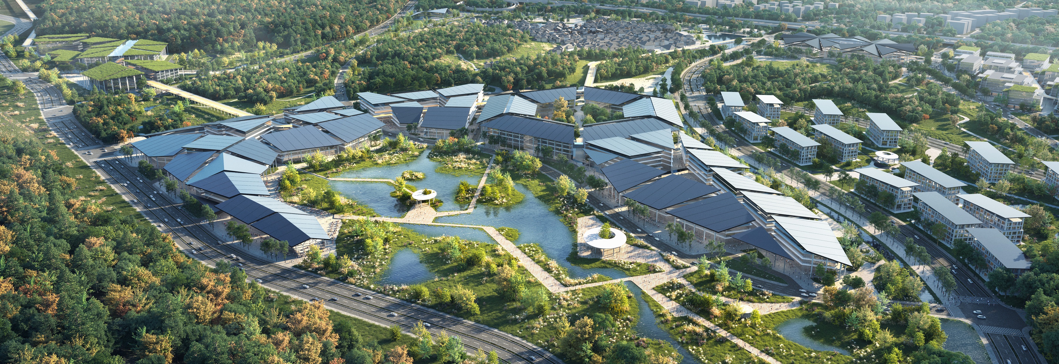 国际能源先行区是一个以能源为核心,生态为源头的全新总部基地,提供全面产业服务,承载华能集团转型,支撑中国能源战略,引领全球能源趋势。规划构建“四芯两链”的空间构架。四芯为能源总部基地、科创孵化区、生态居住园与能创展示村;两链为科技与生态双基因链,“科创之链”提供智慧绿色通行体验,搭建研发、孵化、资本、转化为一体的完整科创链条,链接区域创新网络;“生态之链”连通基地生态要素,沿着山脉南北向延伸,融入区域自然环境和蓝绿生态体系。另外,通过零碳交通、绿色基建系统规划以及低碳建筑、海绵型景观设计等创新技术,打造绿色低碳发展典范。