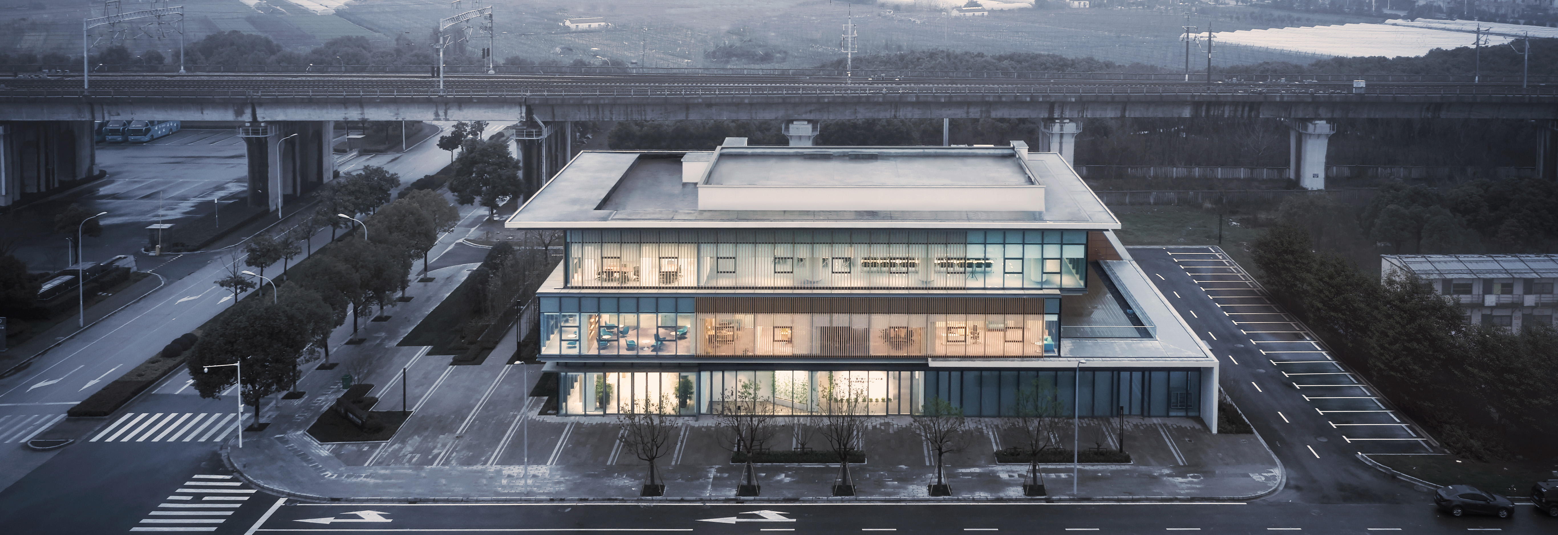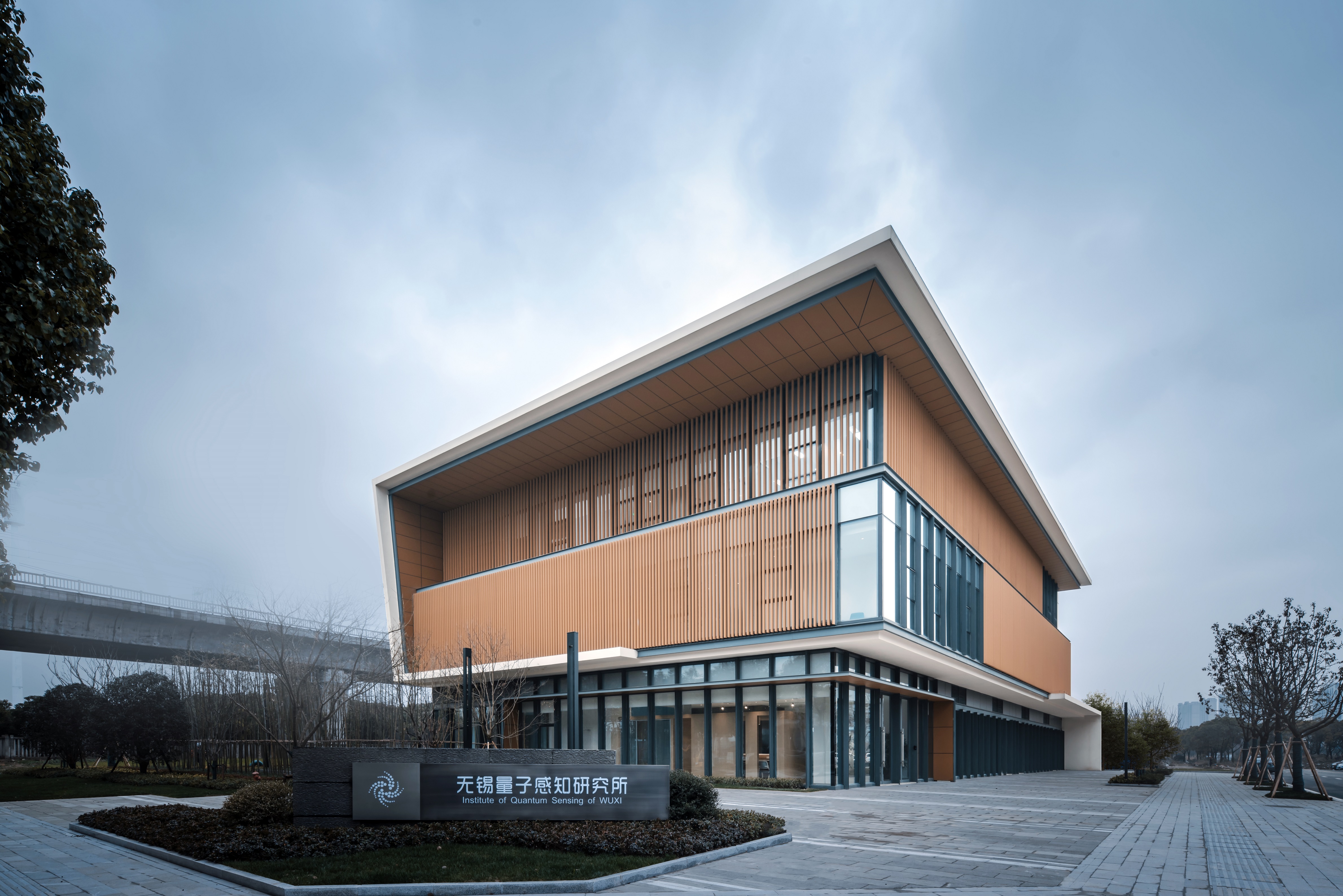 无锡量子感知研究所是一栋以研发办公为主的院士工作站,设计通过对建筑表皮的巧妙折叠处理,突出江南建筑清秀轻盈的建筑气质;同时玻璃幕墙与折板墙面的运用,凸显出建筑静谧而独特的东方神韵。在物理学中用到量子的概念,是指不可分割的基本个体,“量子化”的数值为特定值,而非任意值,因此,我们把细部设计作为空间设计的重要组成部分,高品质的呈现高科技的美。