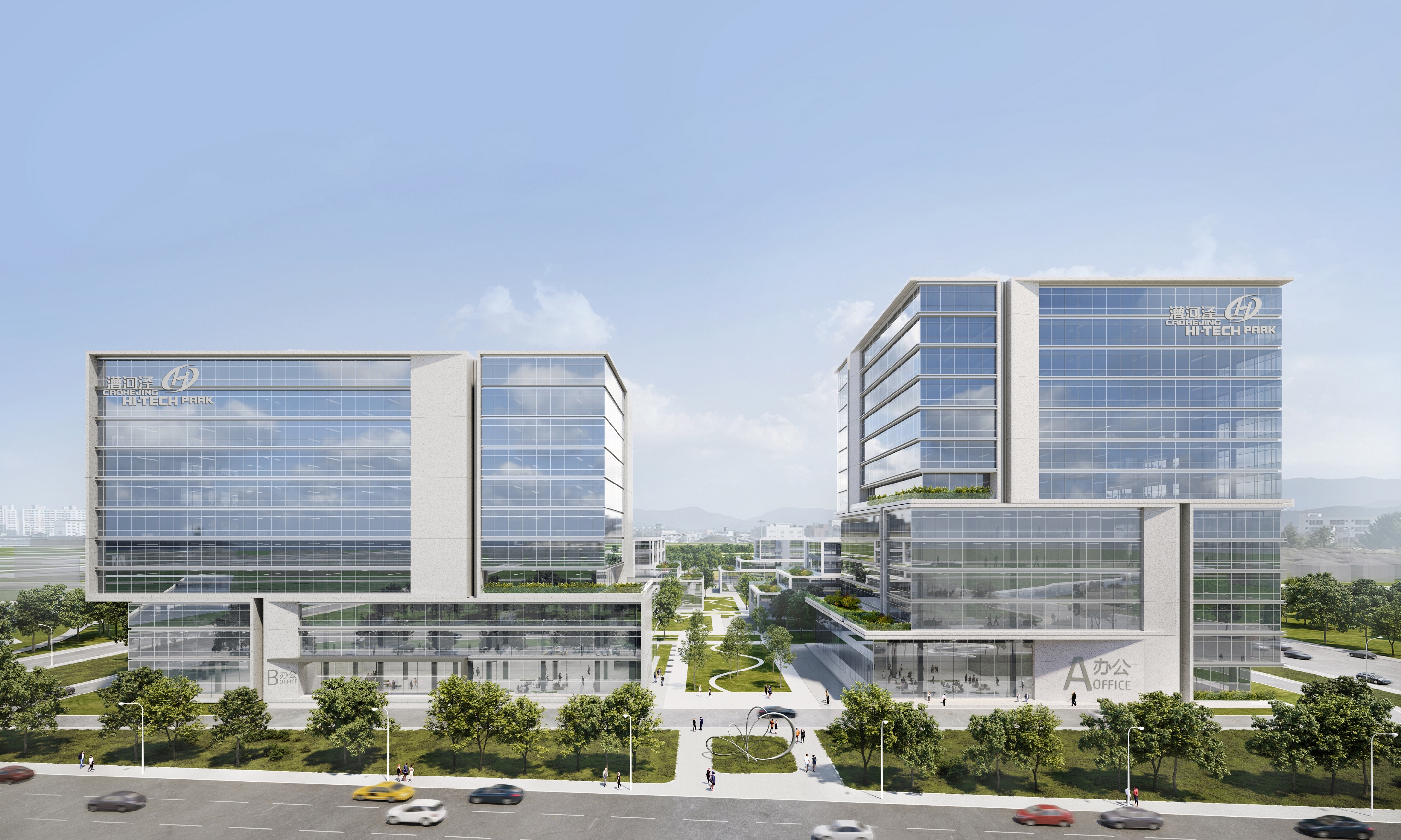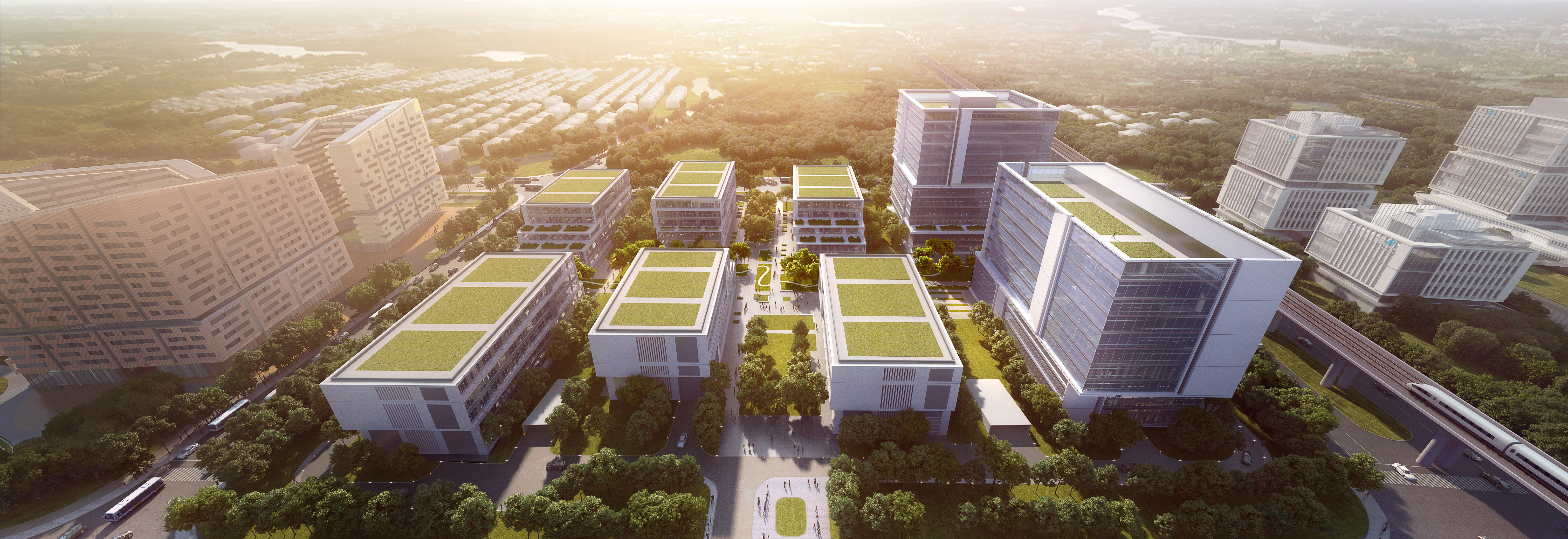 好的办公园区应该有一种类似混合的,都市般的构架,为聚集在一起工作的人们提供丰富多样的都市氛围,同时可以在宜人的绿色环境中工作。 这个项目的中心理念是在绿色里办公,让办公空间与自然充分融合,提高每个个人与环境的参与度,融合度,对自然的感知度,从而营造积极的富于激发性的工作场所。