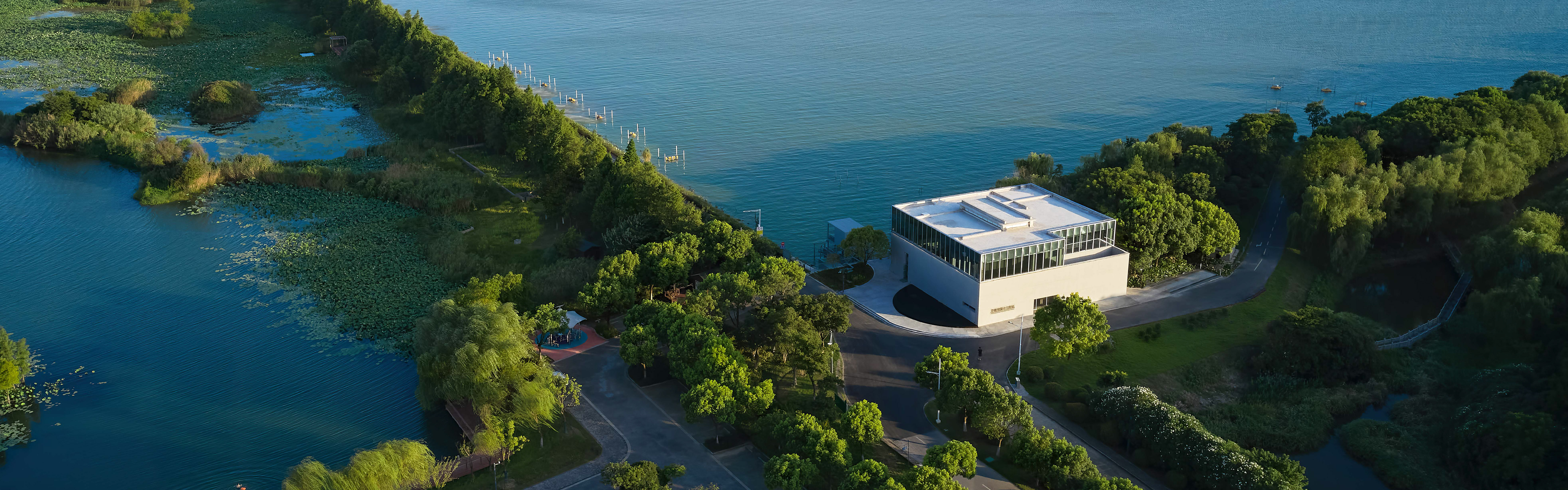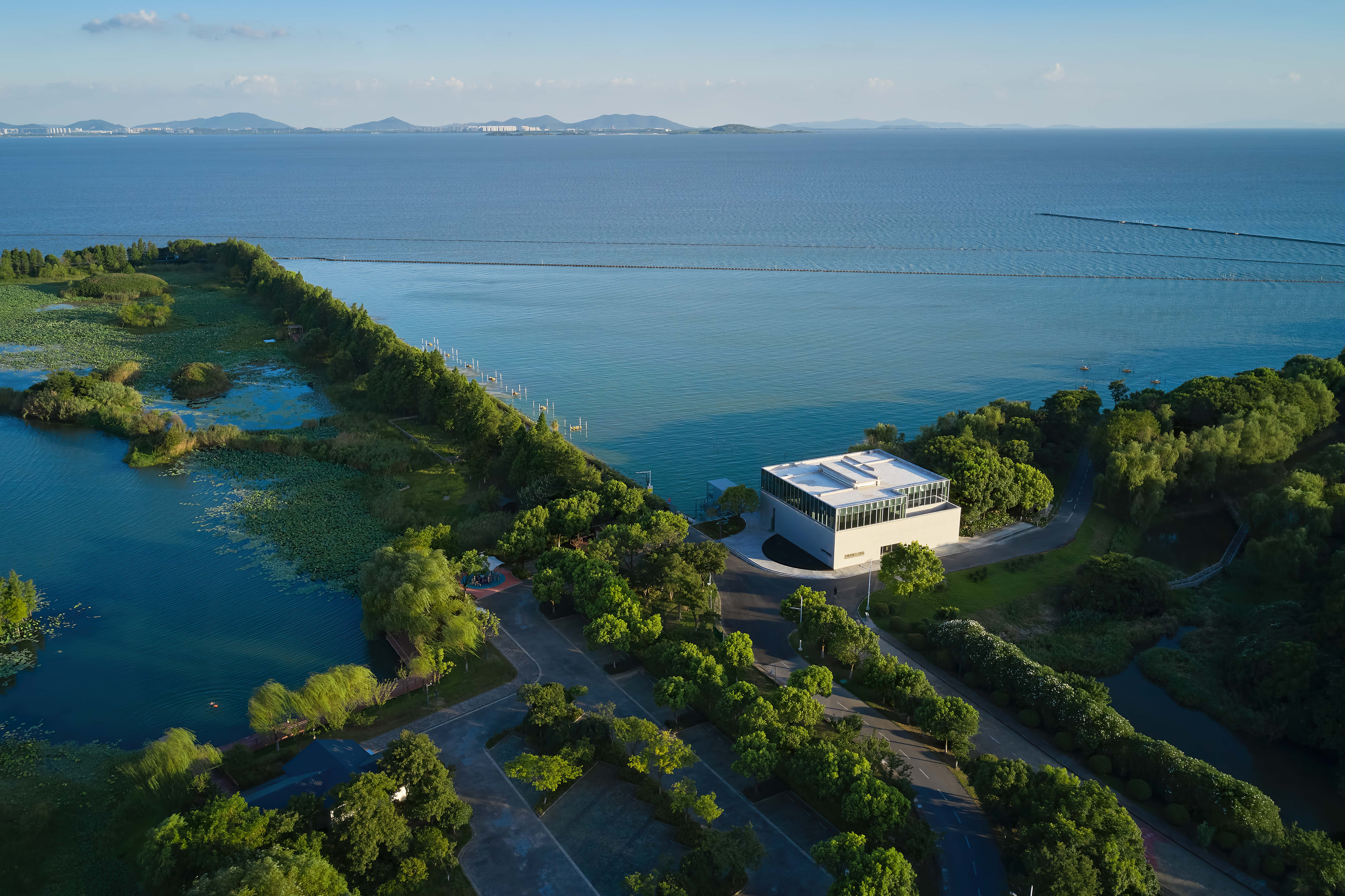 基地位于无锡市南端,市政府中轴线终点,南临太湖,景观环绕,拥有得天独厚的景观资源。项目在原许仙港分离站的旧址上原拆原建,太湖景观及其周边环境成为基地的优势,因此区别于传统工业建筑的空间封闭、专业性强、与外界隔离等特征,设计团队从建筑公共性着手考虑,希望破除传统厂房封闭、单一的工作模式。借力贡湖湾湿地公园的环境优势,将作业、展示、体验、休憩等功能融为一体,实现场地和建筑的价值最大化。