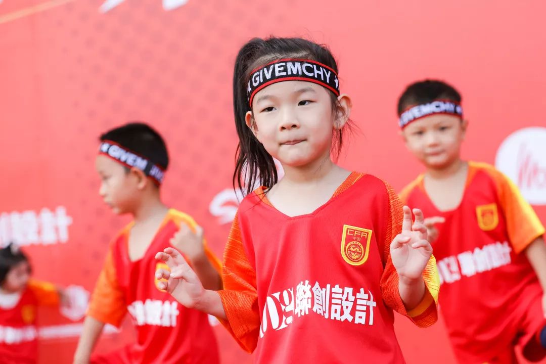 足球决赛现场还有16名小小球童前来助阵
