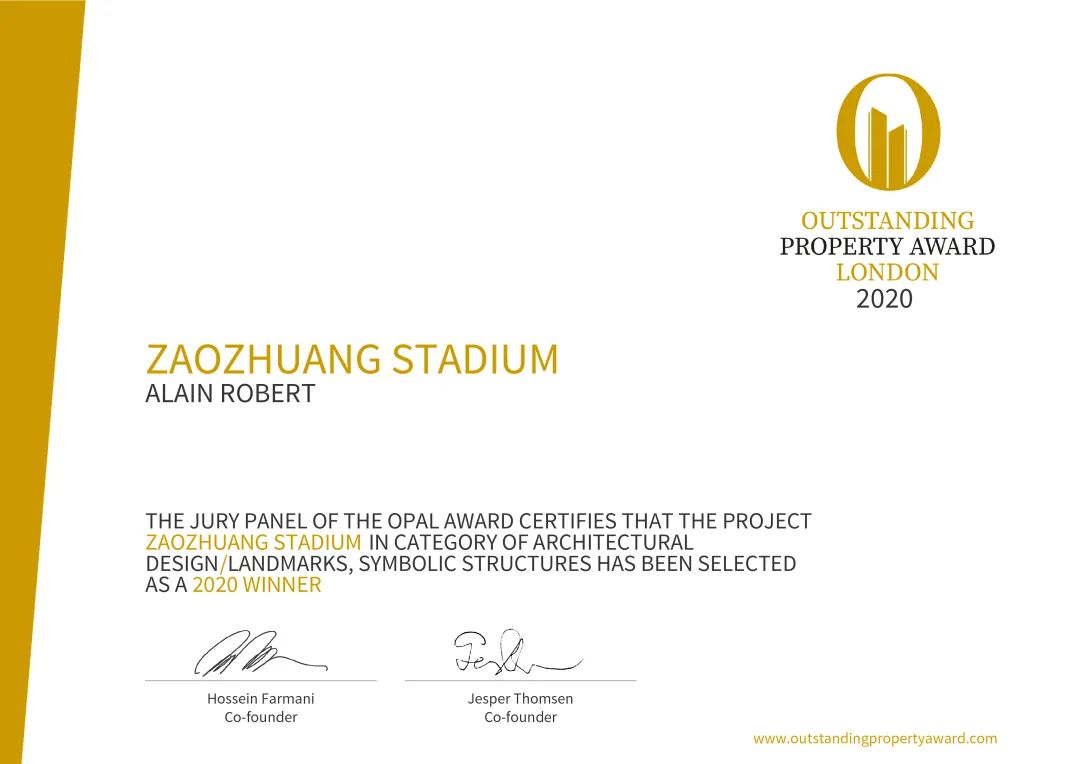 该奖由全球驰名的 :Farmani Group 创立,旨在表彰和奖励在地产开发、建筑设计和室内设计领域做出卓越贡献的全球人才,同时藉此甄选出在地产开发领域中极具特色的创意以及杰出的工艺,让行业专家和人才在此舞台大放异彩。联创设计集团作品枣庄文体中心体育场荣获地标类建筑优胜奖,上海联创设计国际谷荣获地标类建筑优秀奖。