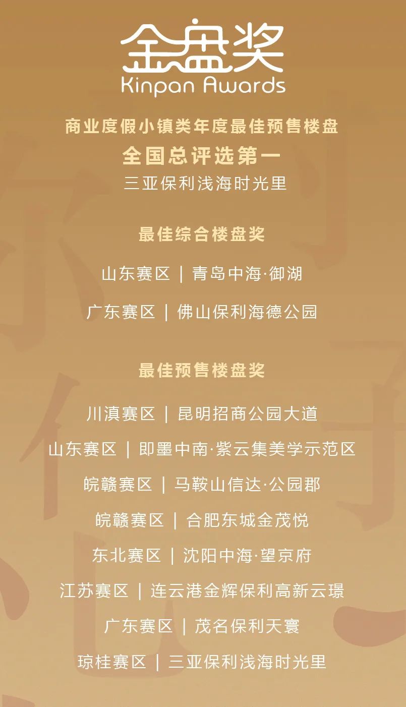 联创设计集团的三亚浅海时光里等11个项目从5000+个申报项目、2500+个入围项目中脱颖而出,荣获全国商业、度假最佳预售楼盘第一及分赛区最佳综合楼盘、预售楼盘等11项荣誉。