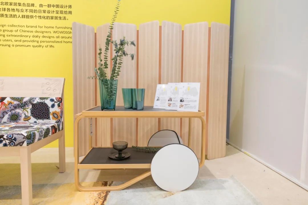 配合Nikari展示的设计作品则是来自著名设计品牌Artek的Tea Trolley桌几。Artek是由有“芬兰设计之父”之称的Alvar Aalto和他的妻子Aino Aalto共同创立的,之所以与Nikari产品搭配展出,是因为在Alvar Aalto生命的最后几年里,Nikari工作室与其有着紧密的合作与联系。在他们的作品中,无论是风格和材质都能带给人关于生活的温馨联想,也同时能展现木的自然、稳重、温馨以及背后的生命力。